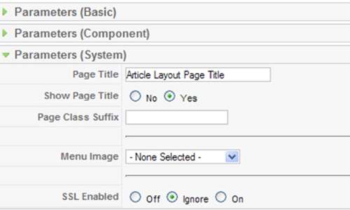 - The "Show Page Title" parameter option is "Yes."
