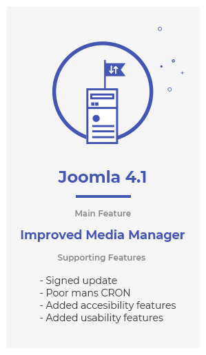 With Joomla! 4.0, a completely rewritten and better version of the media manager was implemented.The major feature of Joomla 4.1 will be an even more improved media manager. Right now the media manager is mainly used for uploading images, but we want to extend it to a true media managing facility. Consider image management with different sizes and metadata, handling and specifically playback of video and audio and support for documents.